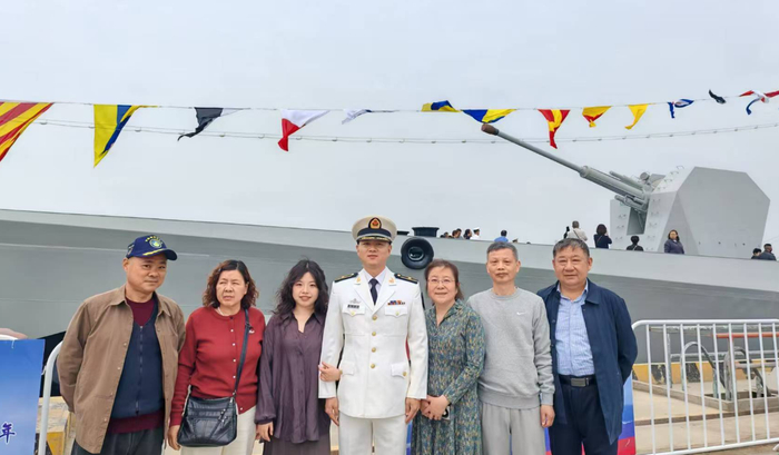“我们一大早就从兴化出发,一路上兴奋极了。我既想瞧瞧女婿,又想看看军舰。”陈蕾的母亲刘广萍笑着说。