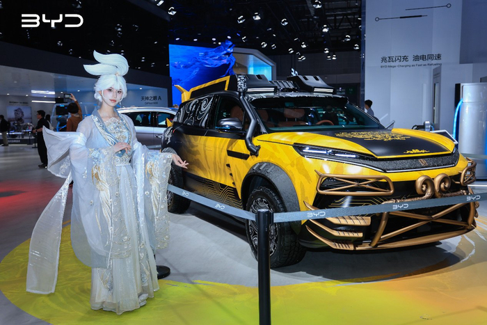 在上海车展8.1H整车馆内,比亚迪展台人流如织,汉唐家族更是绝对“顶流”,人气超高!其中,汉唐家族全新推出的划时代旗舰汉L、唐L,惊喜带来与《黑神话:悟空》的联名改装车,让“齐天大圣”的锋芒,遇见龙颜美学,共同演绎属于中国人的梦幻跨界!同时,定位高端的Dynasty-D王朝D级全尺寸概念车迎来全球首秀,顶峰相见,开创王朝崭新时代!