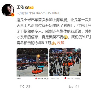 4月23日,小米公关部总经理王化表示,这是小米汽车首次参加上海车展,也是第一次我以参展商的身份来到这个城市。