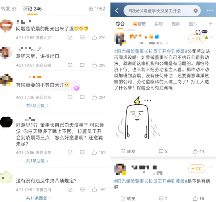 4月21日,“阳光保险董事长拉员工开会到凌晨”事件登上微博热搜。