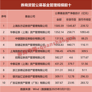 近日,2025年基金一季报渐次披露,券商资管的最新公募管理规模及基金经理观点出炉。