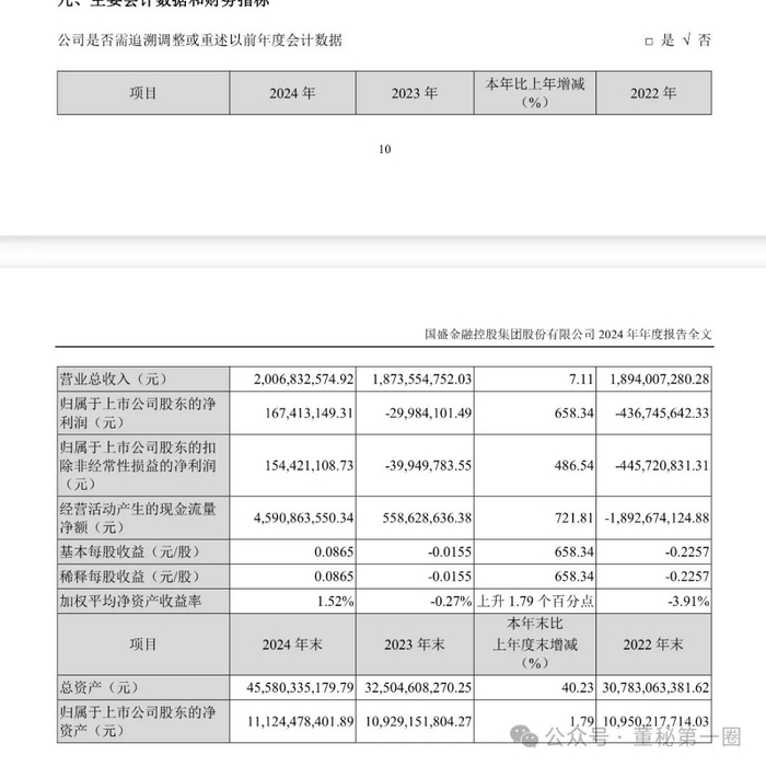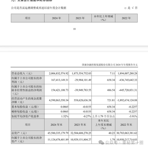 2024年年报显示,国盛金控实现营业收入20.07亿元,同比增长7.11%;净利润1.67亿元,上年同期净亏损2998.41万元,扭亏为盈,且创下2018年以来的最高水平;公司基本每股收益0.0865元,上年同期基本每股收益-0.0155元。