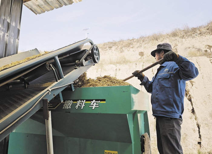 将拌好的料装进投料车。