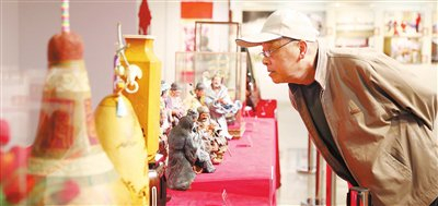 此次展览集中展出近200件我市艺术家近年创作的艺术精品,包括美术、书法、摄影和民间艺术四大门类。参展艺术家皆为各自艺术领域的佼佼者。栩栩如生的木雕作品、惟妙惟肖的彩塑作品、活灵活现的剪纸作品、洒脱俊逸的书法作品……令参观者赞叹不已。记者看到,还有人拿着放大镜观察剪纸作品《大运河天津段》细节,细细品味作品妙处。