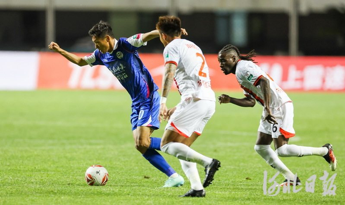 4月23日,石家庄功夫9号外援奥拉维奥(右)在比赛中。