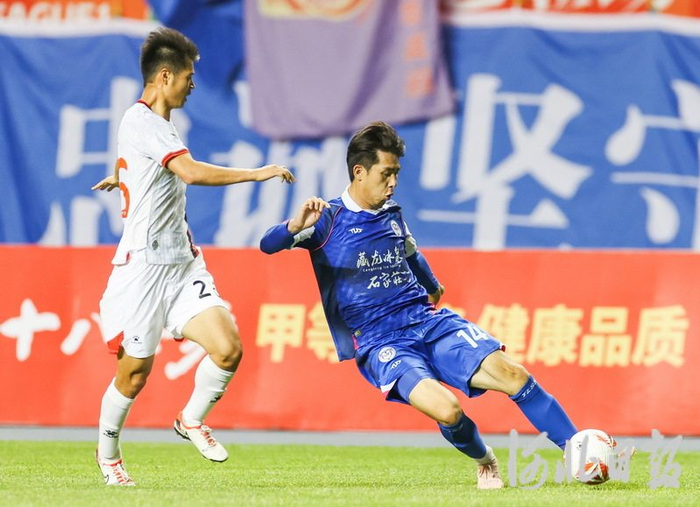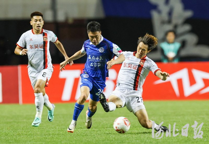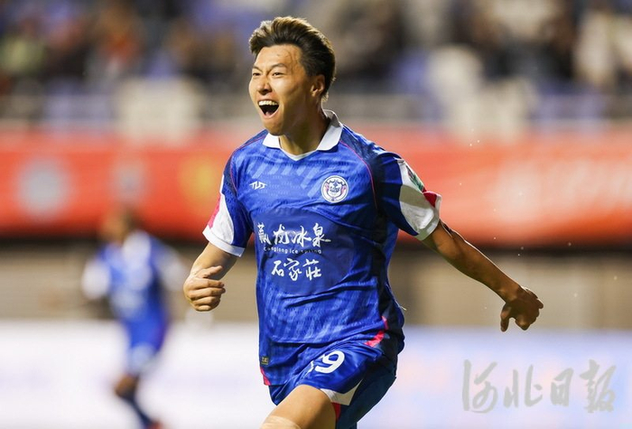 4月23日,石家庄功夫29号王靖斌庆祝进球。