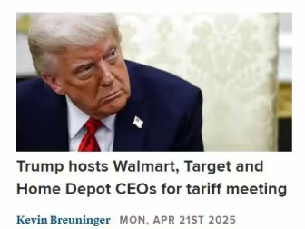 像在21日,川普就召见了全美三大零售巨头沃尔玛、塔吉特、家得宝的CEO专门讨论关税问题。