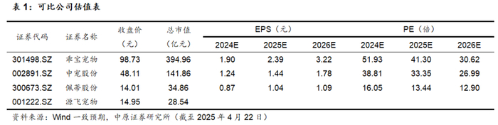 维持公司“增持”投资评级。公司是国内宠物食品龙头,市占率稳步提升,考虑到国内市场规模的增长和公司盈利水平的优化,预计2025/2026/2027年可实现归母净利润分别为8.13/9.88/11.34亿元,EPS分别为2.03/2.47/2.83元,当前股价对应PE为48.59/39.99/34.84倍。目前,公司仍处于合理估值区间,考虑到未来行业和公司的潜在成长空间,维持公司“增持”的投资评级。