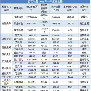 按2025年4月22日已经披露2025年一季报的A股上市公司前十大流通股名单统计,高毅资产旗下产品出现在3家A股上市公司前十大流通股东名单中,合计持股市值179.84亿元,其中持仓海康威视市值达107.45亿元,但较前一个季度减持3595.01万股。另外增持紫金矿业1660万股,当前持股市值达64.95亿元。瑞丰新材则持股数量不变,当前持股市值为7.44亿元。