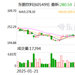 截至2025年4月23日收盘,东鹏饮料A股报收280.54元/股,总市值超过1400亿元。