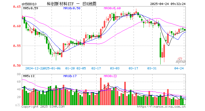 科创新材料ETF(588010)业绩比较基准为上证科创板新材料指数收益率,管理人为博时基金管理有限公司,基金经理为唐屹兵,成立(2022-09-30)以来回报为-40.81%,近一个月回报为-3.19%。