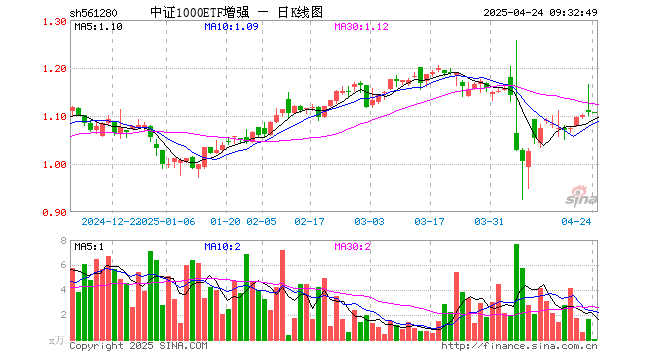 4月24日,中证1000ETF增强(561280)开盘涨0.00%,报1.107元。中证1000ETF增强(561280)重仓股方面,恒玄科技开盘涨0.27%,广电计量跌0.39%,运达股份涨0.18%,渤海租赁涨0.35%,电广传媒涨0.14%,立高食品跌0.05%,华夏航空涨0.40%,联瑞新材涨0.00%,苏美达跌0.32%,星网锐捷涨0.26%。