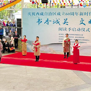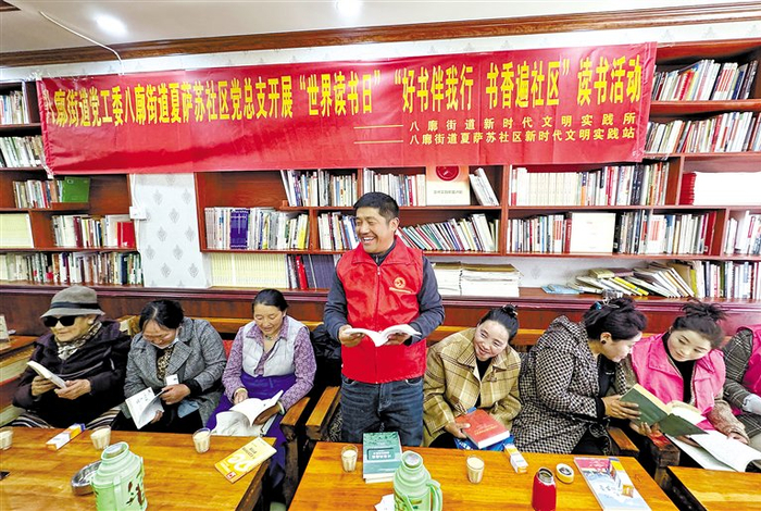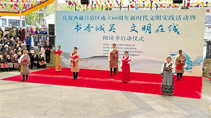 图为4月23日,庆祝西藏自治区成立60周年新时代文明实践活动暨书香城关 文明在线