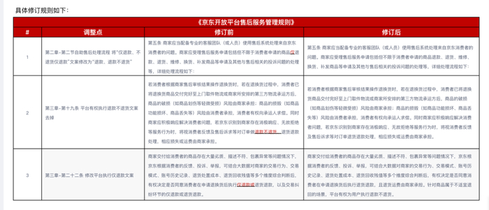 综合来看,京东修订后的《京东开放平台售后服务管理规则》将于4月30日生效。淘宝方面则表示,相关举措预计于7月陆续实施。