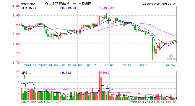双创50ETF基金(588350)业绩比较基准为中证科创创业50指数收益率,管理人为鹏扬基金管理有限公司,基金经理为施红俊,成立(2022-10-26)以来回报为-18.64%,近一个月回报为-6.84%。