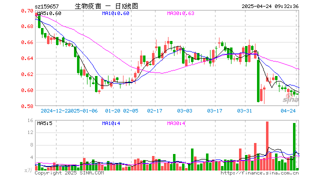 生物疫苗ETF(159657)开盘涨0.17%,重仓股复星医药涨0.12%,长春高新涨0.01%