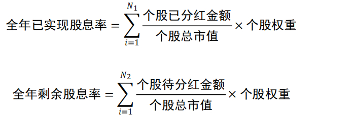 图2展示了各指数2025年以来已实现股息率及全年剩余股息率,其中已实现股息率与剩余股息率的计算方法如下: