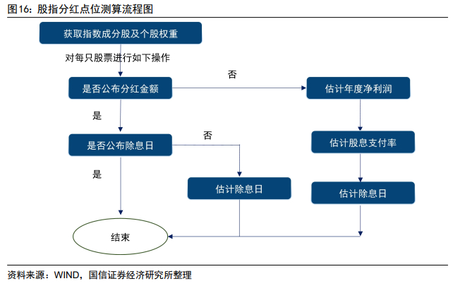 图16展示了股指分红点位测算流程图,在获取指数成分股及其个股权重后,我们即可对每只成分股进行如下操作: