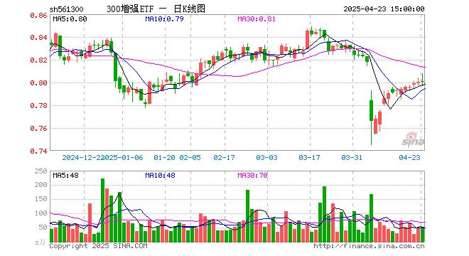 4月23日300增强ETF(561300)份额减少900.00万份,最新份额25.97亿份,最新规模20.79亿元
