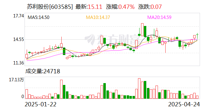 财务数据显示,2024年,苏利股份实现营业收入约为23.09亿元,同比增长17.91%;对应实现归属净利润约为-1084.7万元,同比转亏。