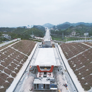 与此同时,在南凭高铁崇凭段,数辆曲臂台车巨臂高悬,作业现场焊花飞溅如金色雨点;混凝土泵车长臂伸展,将混凝土精准浇筑至模板内……建设者们正抢抓春季施工有利时机,加快推进项目建设。目前,南凭高铁崇凭段已顺利完成首条接触网导线架设和全线铺轨工程;新建站房进入全面装饰装修阶段,站房工程有望6月交付验收;预计今年内具备通车条件。