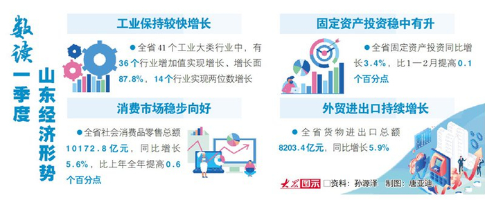 一季度地区生产总值增长6.0% 山东经济实现“开门稳”