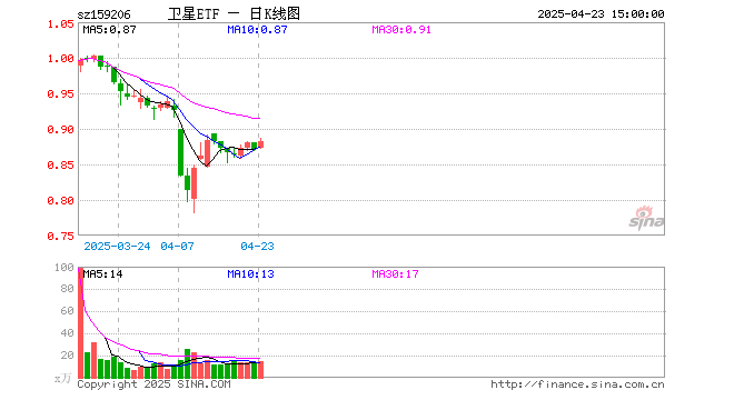 4月23日卫星ETF(159206)份额减少100.00万份,最新份额1.44亿份,最新规模1.27亿元