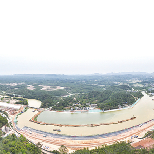 在平陆运河(南宁段)上,现场航道水面宽阔,两岸护坡等工程施工也在紧锣密鼓地进行。 本报记者黄红锦 摄