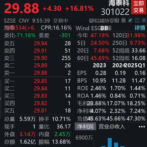 4月24日,海泰科高开高走,截至发稿,该股大涨16.81%,报29.88元,成交额1.62亿元。