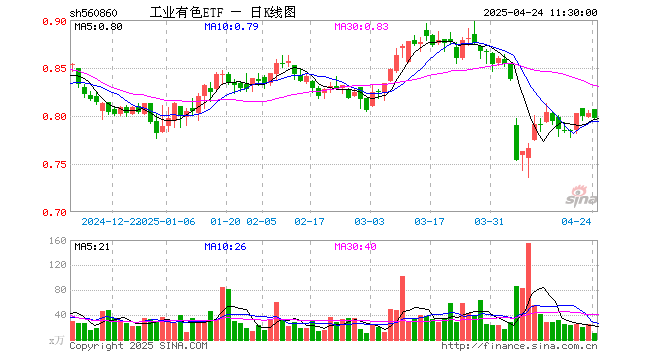 工业有色ETF(560860)跌0.75%,半日成交额898.28万元