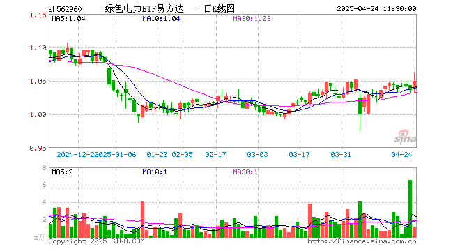 绿色电力ETF易方达(562960)涨1.35%,半日成交额121.92万元