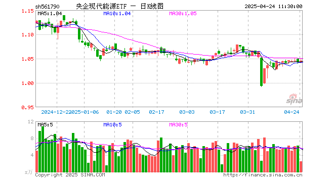 4月24日,截止午间收盘,央企现代能源ETF(561790)涨0.29%,报1.045元,成交额253.54万元。央企现代能源ETF(561790)重仓股方面,长江电力截止午盘涨0.86%,国电南瑞涨0.87%,中国核电跌0.32%,三峡能源涨0.24%,中国铝业跌0.92%,中国电建跌0.21%,国电电力涨0.00%,中国石油涨0.00%,中国海油跌0.08%,云铝股份涨1.47%。