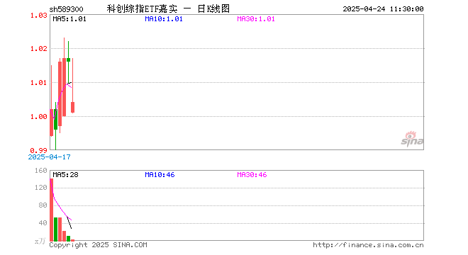 科创综指ETF嘉实(589300)业绩比较基准为上证科创板综合指数收益率,管理人为嘉实基金管理有限公司,基金经理为尚可,成立(2025-04-09)以来回报为1.83%。