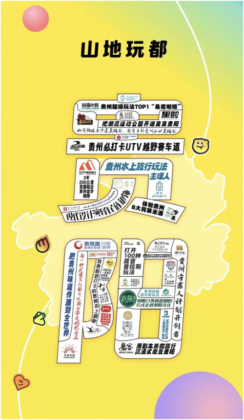 在此基础上,马蜂窝还给省会贵阳提炼了很多年轻化的新体验和新口号,比如“年轻人喜爱的山地秘境”、“贵阳旅行必做的100件事”、“贵阳七大主题玩法”等等,对于贵州旅游品牌年轻化和刷新印象标签都起到了很显著的效果。