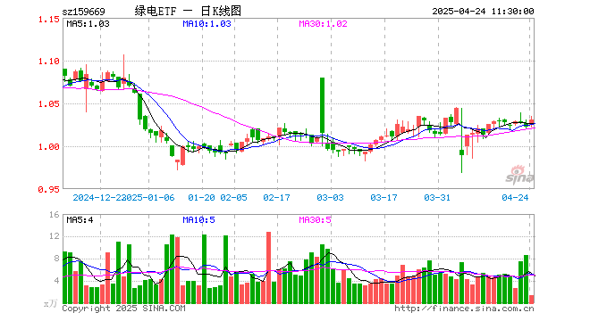 绿电ETF(159669)涨0.88%,半日成交额136.86万元