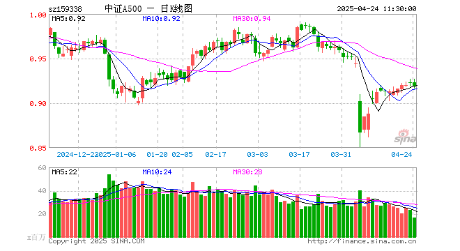 中证A500ETF(159338)跌0.43%,半日成交额15.17亿元