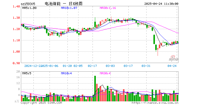 储能电池50ETF(159305)跌0.92%,半日成交额442.75万元