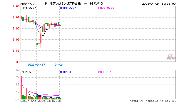 4月24日,截止午间收盘,科创信息技术ETF摩根(588770)跌0.62%,报0.960元,成交额403.68万元。科创信息技术ETF摩根(588770)重仓股方面,芯源微截止午盘跌1.43%。