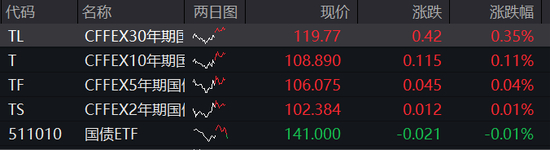 国债期货:截止午盘收盘,30年期主力合约涨0.35%,10年期主力合约涨0.11%,30年期主力合约涨0.04%,30年期主力合约涨0.01%。