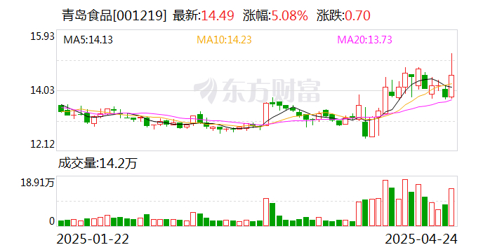 食品股拉升,青岛食品触及涨停 每日经济新闻 每日经济新闻官方账号 2025.04.2409:47 关注 每经AI快讯,4月24日,食品股拉升,青岛食品触及涨停,好想你涨超6%,百合股份、西麦食品、甘源食品跟涨。(文章来源:每日经济新闻)