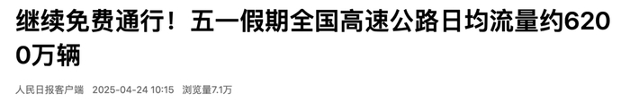 继续免费通行!五一假期全国高速公路日均流量约6200万辆