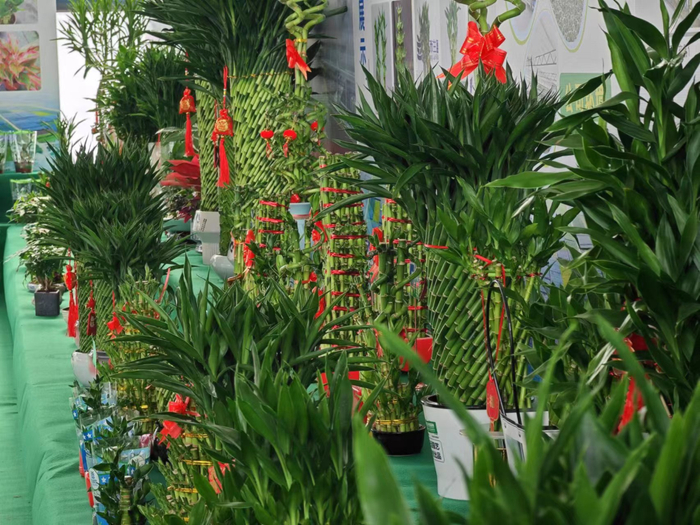 通过“节庆搭台、产业唱戏”的创新模式,2024年新春期间推出“龙耀呈祥”迎春花市嘉年华,融合富贵竹艺术、蒲草时尚走秀、年货文创市集等多元体验,带动700余农户、27个村庄种植富贵竹,蒲草种植面积上千亩,推动形成规模化生产。