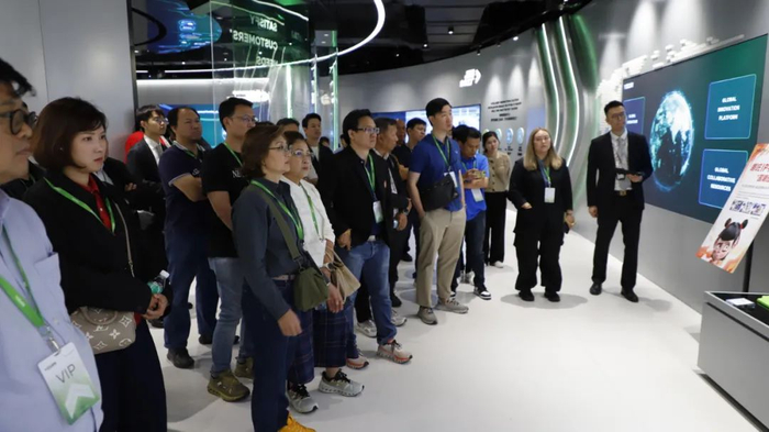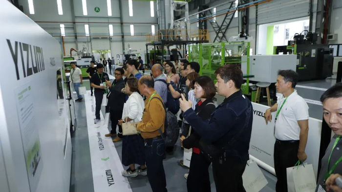 随后,代表团步入伊之密成型世界体验馆,通过三维动态建模和幻影成像系统,沉浸式地体验了多种整体解决方案。当伊之密电动注塑机的动态精度控制数据实时显示在可视化界面上时,多家汽配企业的代表表示,这项技术对他们生产高精度、轻量化的内饰组件具有重要的参考价值。