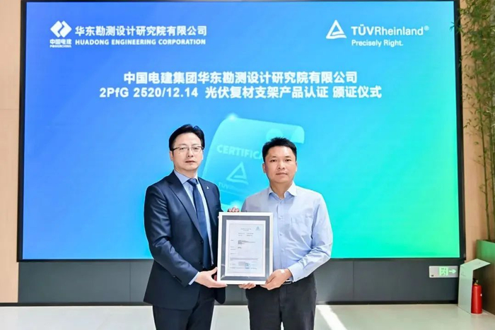TÜV莱茵为中国电建集团华东勘测设计研究院有限公司颁发首张复合材料光伏支架产品证书