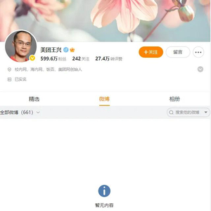 据第一财经报道,4月24日,有消息称美团创始人王兴将微博清空。记者从知情人士处获悉,王兴的微博早就半年可见,并没有“清空”动作。
