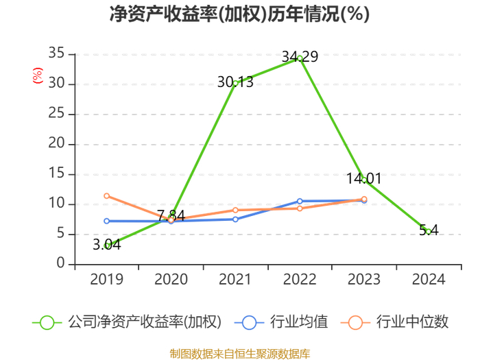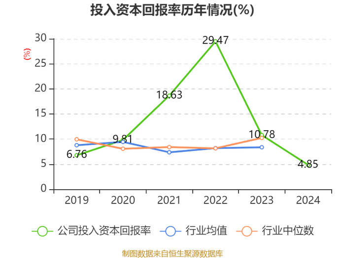 数据显示,2024年公司加权平均净资产收益率为5.4%,较上年同期下降8.61个百分点。公司2024年投入资本回报率为4.85%,较上年同期下降5.93个百分点。
