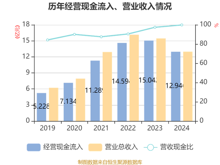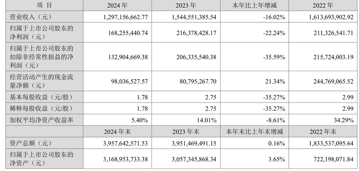 中证智能财讯儒竞科技(301525)4月24日披露2024年年度报告。2024年,公司实现营业总收入12.97亿元,同比下降16.02%;归母净利润1.68亿元,同比下降22.24%;扣非净利润1.33亿元,同比下降35.59%;经营活动产生的现金流量净额为9803.65万元,同比增长21.34%;报告期内,儒竞科技基本每股收益为1.78元,加权平均净资产收益率为5.40%。公司2024年度分配预案为:拟向全体股东每10股派现3.5元(含税)。