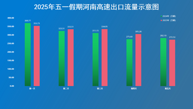 高速公路运行趋势预测:2025年五一小长假共5天,预计探亲流、旅游流、学生流仍将“三流叠加”,中、短途自驾出行依旧是主要出行方式。参考近年来五一假期高速公路流量数据及出行趋势,预计今年五一期间,全省高速公路出口总流量将达到1600万辆左右,较2024年同比增长2.42%,日均约320万辆,是日常日均流量的2.05倍,5月1日单日流量将攀升至峰值,预计达到353.73万辆。