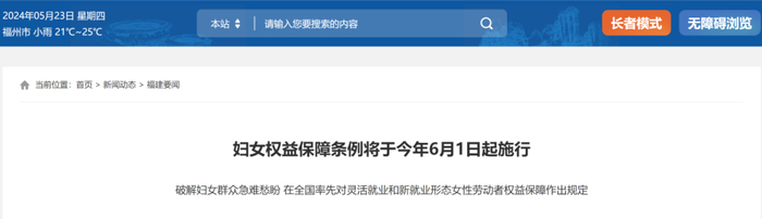 福建省是新修订的妇女权益保障法实施以来,继上海市之后第二个出台妇女权益保障条例的省份,并在全国率先针对灵活就业和新就业形态女性劳动者权益保障作出规定。