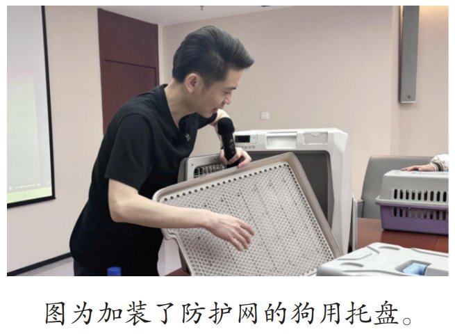 宠物运输箱配备了两款托盘:猫用托盘设有猫砂区,每次运输后都会更换猫砂并进行全面消毒;狗用托盘底层铺设隔尿垫,上层加装防护网,有效防止狗抓咬、误食尿垫。未来,将进一步细分运输箱的品类,推出针对猫和狗的专属运输箱,以更好满足不同宠物需求。